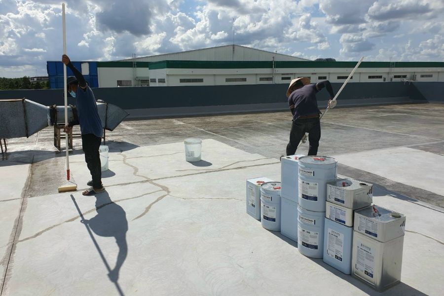 - Thi công màng khò nóng hoặc màng lỏng gốc polymer.